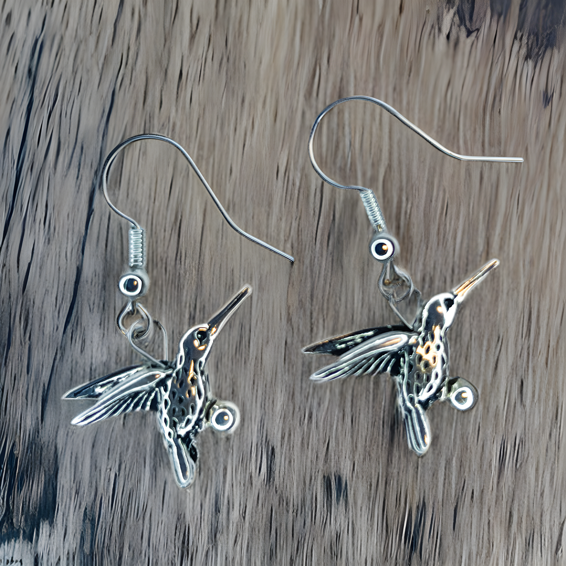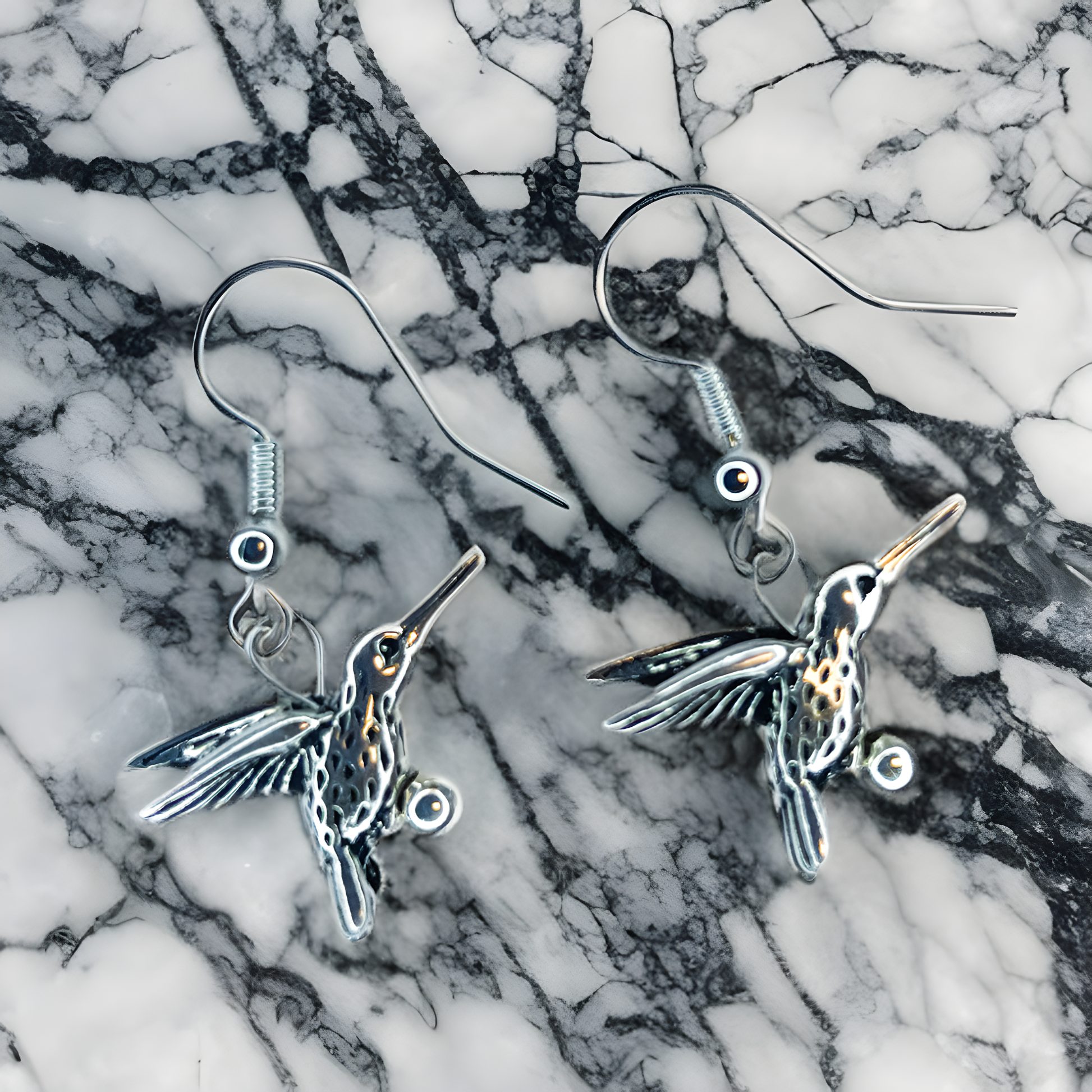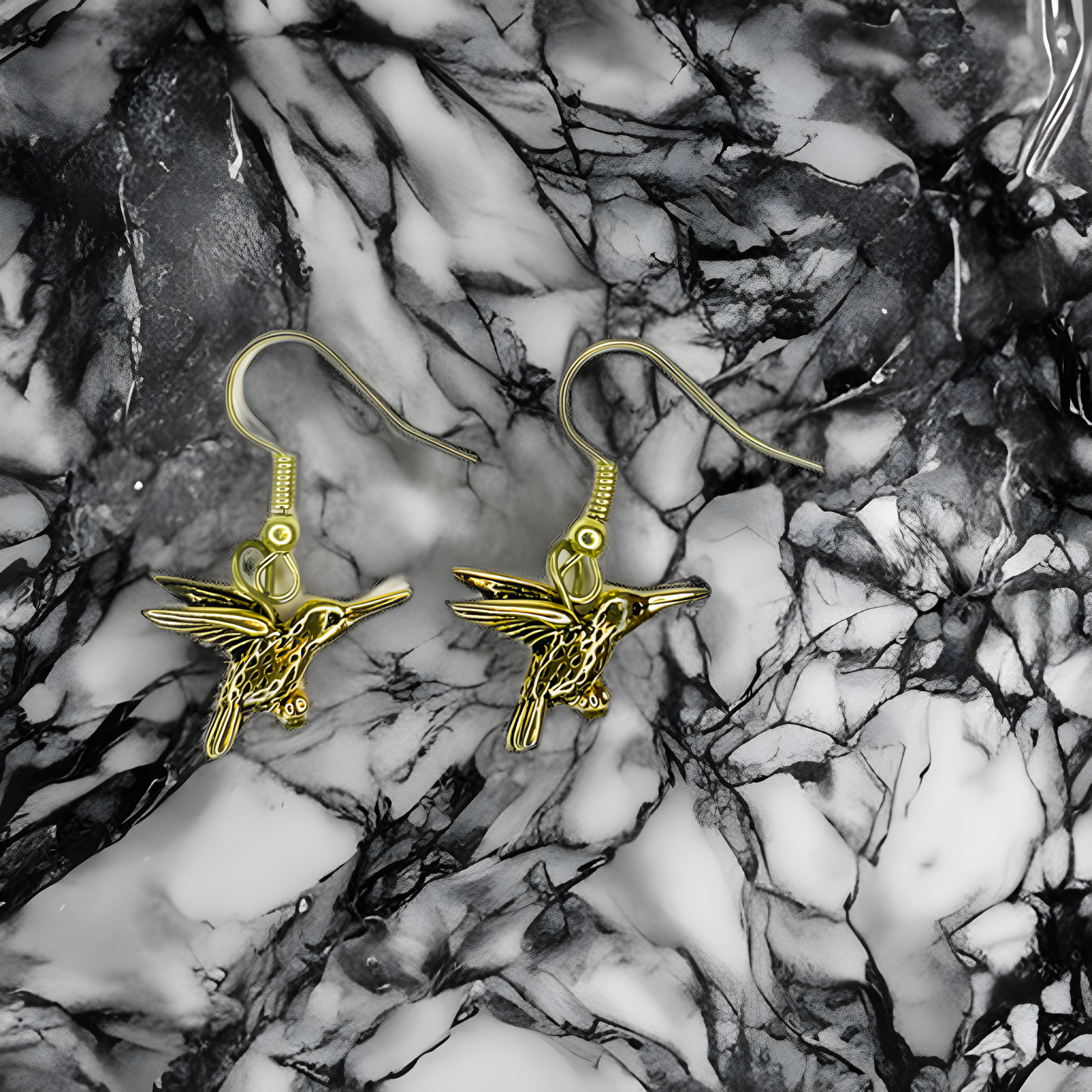 Elevate your style with our exquisite Tiny but Mighty Hummingbird earrings in Gold & Silver pewter, measuring ¾ inches.